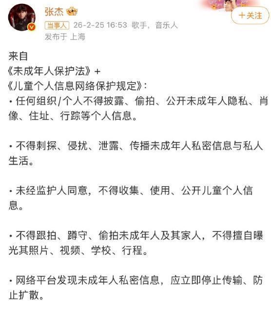 而张杰也第一时间发声力挺妻子,直接引用《未成年人保护法》条款维权。