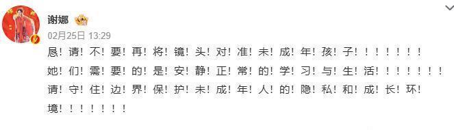 2月25号,谢娜发布了一条微博。